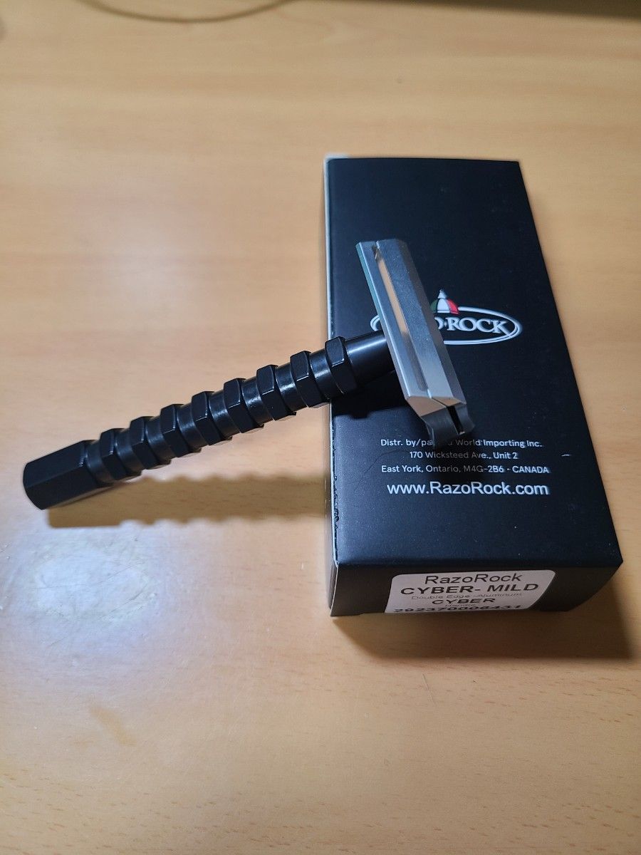 Just received the new Cyber Razor. This one is the Medium version (they only offer mild or medium), and got it with the stainless steel super knurl handle for extra weight. I was a bit nervous first shave but I don’t know why as it shaved beautifully. I shave every day and this razor is nothing short of excellent. This Cyber Razor by RazoRock has retired my trusty Merkur 34C. Yes I recommend this cyber razor to all my friends and family.