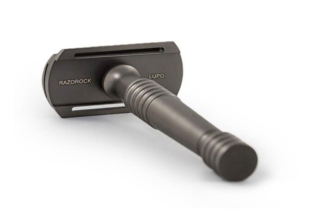 The RazoRock stainless steel Lupo safety razor is CNC milled from corrosion-resistant 316L marine-grade stainless steel and extremely durable.