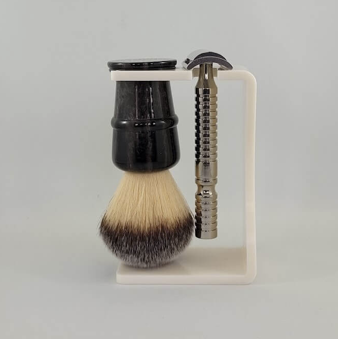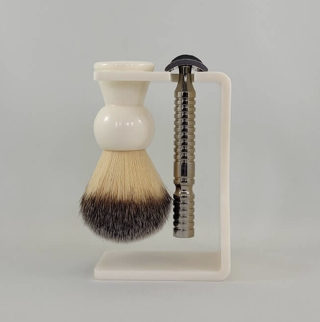 The RazoRock Universal Shaving Brush & Razor Stand is available in two colors, black and ivory, both have a nice glossy finish. We know this is not an expensive item, but a lot of thought and design went into this stand and we hope you enjoy it!