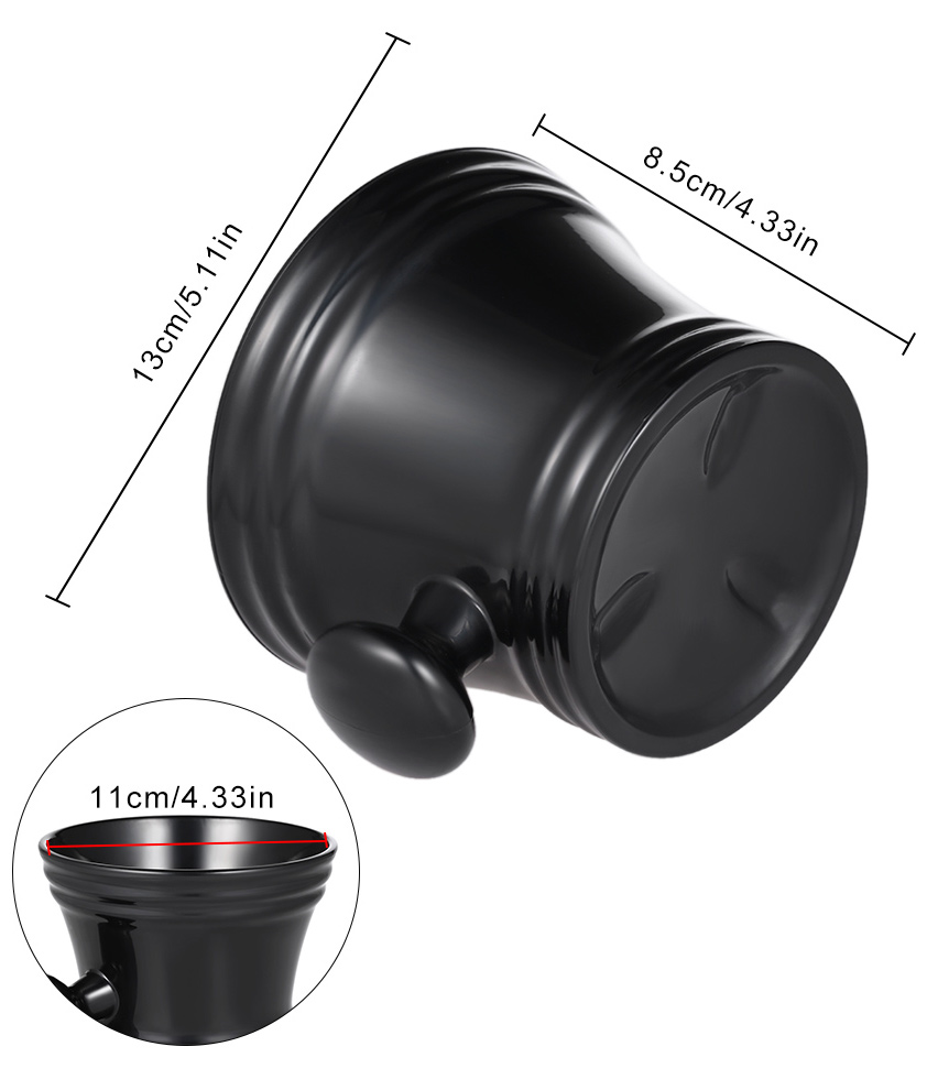 Easily whip up great Lathers in this Large Durable Shaving Mug ( Black Thermoplastic ). Shaving Mug is. especially useful also for storing your favourite Shaving Soap.